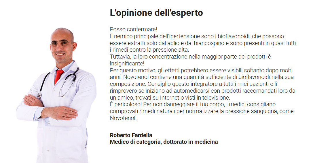 Ho 72 anni e tre anni fa mi hanno diagnosticato ipertensione, un soffio al cuore e così via. Stavo male ma non facevo nulla al riguardo. Sei mesi fa, a giudicare dai segni, mi è venuto un microinfarto. Ovviamente mi sono fatto prendere dal panico, ma mi sono rifiutato di prendere le pastiglie che mi erano state prescritte. Le sostanze chimiche sono dannose, lo sanno tutti, ma non avevo idea di cosa fare. Per fortuna mi sono imbattuto in un vecchio amico che mi ha parlato di Novotenol. Ora, come potrete immaginare, non mi preoccupa più NIENTE. La mia pressione è normale e io sono sano come un pesce!